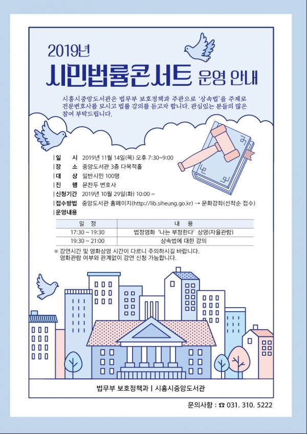 시민법률콘서트는 법무부에서 생활 속 많이 겪게 되는 법적 문제를 선정해 해당 분야의 전문변호사를 추천 및 지원해주는 강좌다. 전국 도서관, 교육지원청, 시·군구청 등 기관을 대상으로 한다.