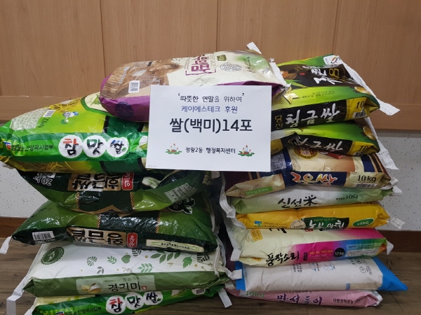전달된 백미 14포는 지난 9월 28일 ㈜케이에스테크가 확장 이전할 때, 시들고 버려야하는 꽃 화환 대신 나눔을 실시할 수 있는 쌀 화환을 요청해 받은 것이다. 저소득층 및 독거노인 세대가 다가오는 연말에 조금이나마 따뜻하게 지낼 수 있었으면 하는 마음으로 나눔을 실시하게 됐다고 한다.