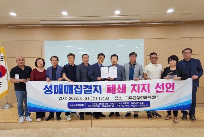 이날 성매매집결지 폐쇄에 대한 지지 선언 및 서약에는 70여 년 동안 이어진 어두운 그림자를 지우기 위해 더 이상 방치할 수 없다는 파주읍 주요 단체장들과 주민들의 의지가 담겨있다.