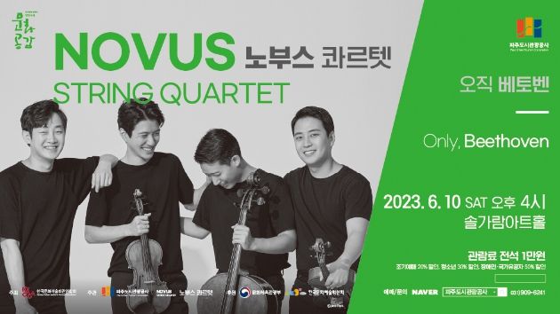 미디어라이프 중부신문 정호복 기자 | 파주도시관광공사(사장 최승원)가 기획한 클래식 공연 노부스콰르텟 '오직 베토벤'이 다가오는 6월 10일 오후 4시에 운정행복센터 공연장에서 열린다.