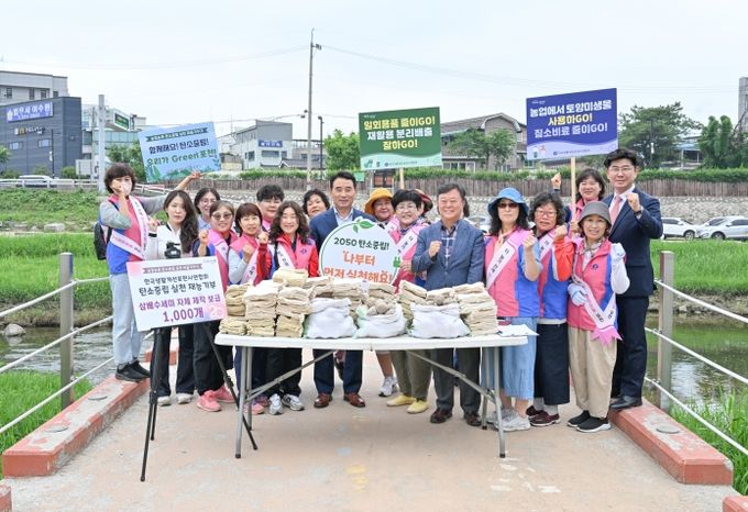 특히, 탄소중립 실천 길거리 캠페인은 생활개선회원들의 재능기부로 만든 삼베 수세미 1,000장을 시민에게 나누며, 시민에게 탄소중립에 대한 중요성과 공감대를 형성하는 기회가 됐다.