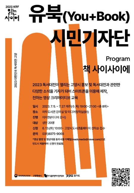 미디어라이프 중부신문 정호복 기자 | 고양특례시 마두도서관은 올해 9월 고양시에서 열리는 대한민국 독서대전을 홍보할 ‘유북(You+Book) 시민기자단’ 교육생을 모집한다.