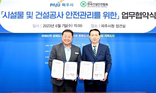 미디어라이프 중부신문 정호복 기자 | 파주시는 7일 시청 접견실에서 (사)한국건설안전협회와 ‘시설물 및 건설공사 안전 관리를 위한 업무협약’을 체결했다.