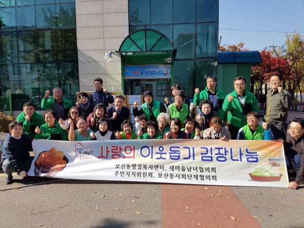 이번 사랑의 김장 행사는 나눔 봉사를 통해 보산동 관내 소외계층가구에게 인정이 가득한 뜻깊은 사랑 나눔을 실천하고자 새마을에서 주관하는 특색사업으로 이번 김장은 보산동 새마을회원들이 콩, 고구마 등을 수확하며 마련한 기부금과 주민자치위원회 및 지역사회보장협의체 등의 후원금으로 준비됐다.