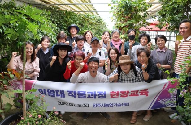 이번 교육은 지난 5월 11일부터 6월 8일까지 매주 목요일 22명의 교육생이 5회에 걸쳐 노지에서 재배가능한 아열대작물 교육을 이론과 현장 견학을 병행해 진행했다.