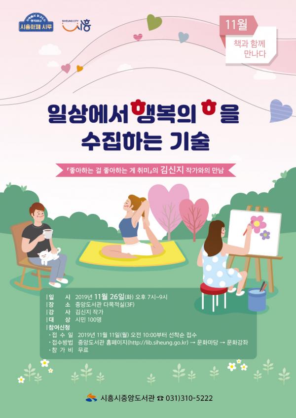 참여를 희망하시는 분은 11월 11일 월요일 오전 10시부터 시흥시공공도서관통합홈페이지 문화강좌란에 개인별로 접수하면 된다.