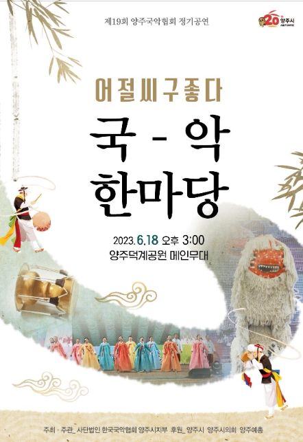 미디어라이프 중부신문 정호복 기자 | 양주시는 오는 18일 오후 3시 양주 덕계근린공원에서 (사)한국국악협회 양주시지부의 제19회 정기공연 "어절씨구 좋다 국악한마당"을 개최한다.