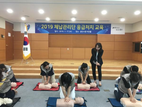 이날 용인소방서 전문강사가 나와서 심폐소생술을 이론과 실습을 통해 지도하고 자동심장충격기 사용법 등 각종 응급처치요령을 알려줬다.