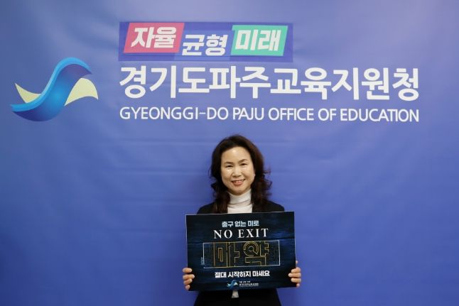 미디어라이프 중부신문 정호복 기자 | 파주교육지원청 최은미 교육장은 14일 마약 범죄 예방‘NO EXIT’ 릴레이 챌린지에 동참했다.