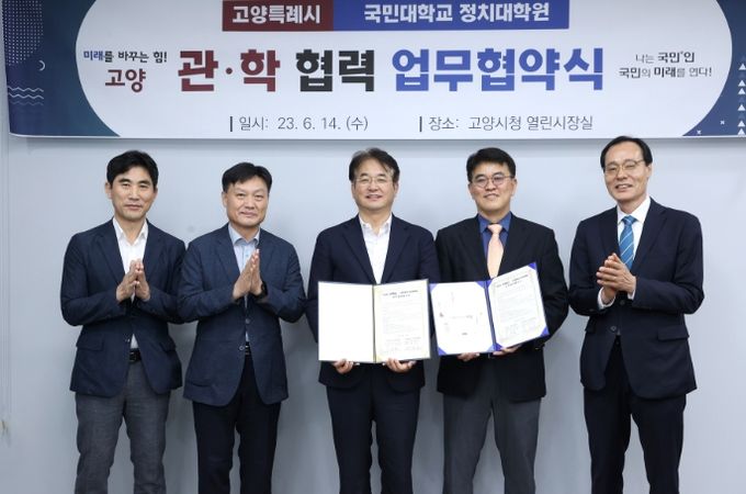 이날 협약식에는 이동환 고양특례시장, 국민대학교 배병인 정치대학원장, 윤수찬 주임교수 등이 참석했다.
