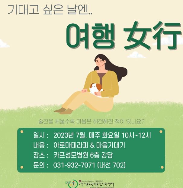 미디어라이프 중부신문 정호복 기자 | 고양시중독관리통합지원센터가 여성 음주자 치유 프로그램 ‘기대고 싶은 날엔, 여행(女行)’을 운영한다.
