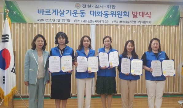 미디어라이프 중부신문 정호복 기자 | 최근 새롭게 발족된 고양특례시 바르게살기운동 대화동협의회가 지난 15일 대화동 행정복지센터에서 발대식을 개최했다. 발대식은 바르게살기운동 대화동협의회가 1년여의 휴식기를 가진 후 최근 새롭게 발족되어 진행됐다.