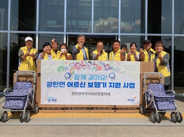 미디어라이프 중부신문 정호복 기자 | 파주시 광탄면 지역사회보장협의체가 지역 내 거동이 불편한 저소득 어르신들을 위해 보행보조기 20대를 전달했다.