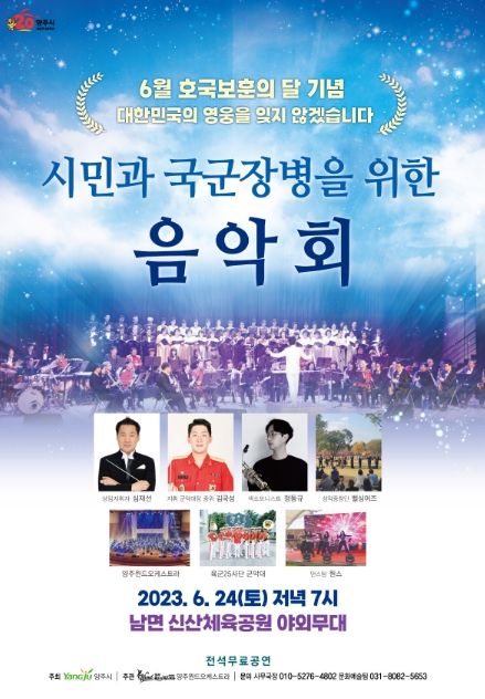 미디어라이프 중부신문 정호복 기자 | 양주시는 오는 24일 저녁 7시 양주시 남면 신산체육공원에서 ‘시민과 국군장병을 위한 음악회’를 개최한다고 19일 밝혔다.