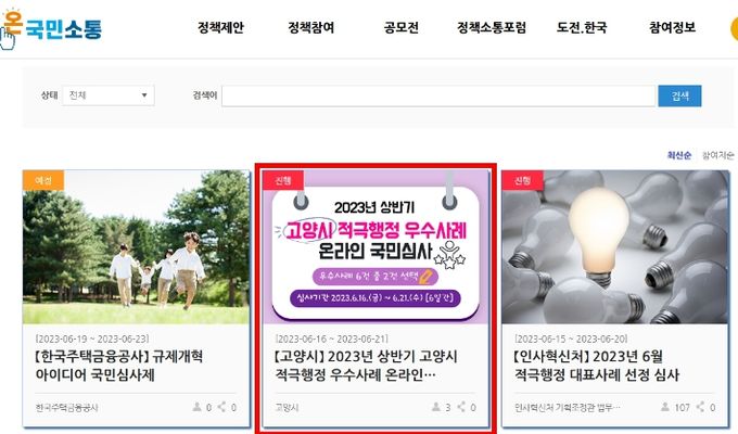 한편, 시는 매년 상·하반기 적극행정 우수사례 경진대회를 열어 고양특례시민이 체감할 수 있는 적극행정 우수사례를 발굴·시상하고 공직 내 적극행정 문화를 확산시켜 나가고 있다.