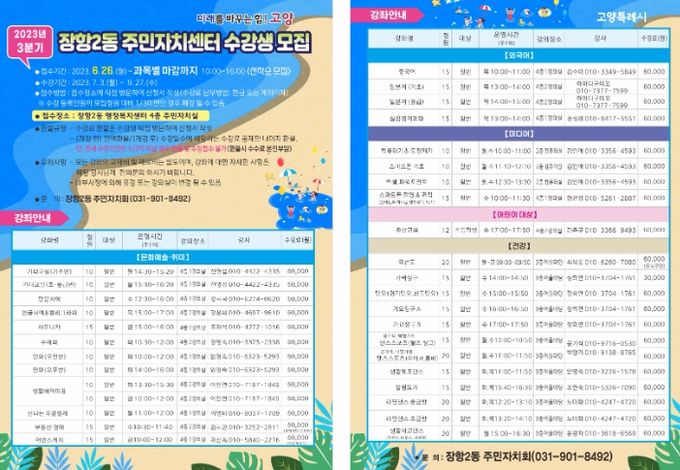 미디어라이프 중부신문 정호복 기자 | 고양특례시 장항2동 주민자치회는 오는 6월 26일부터 30일까지 2023년 3분기 문화강좌 프로그램 수강생을 모집한다.
