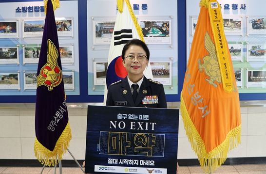 미디어라이프 중부신문 정호복 기자 | 김선경 양주여성의용소방대 연합회장은 19일 마약 범죄 예방을 위한 ‘NO EXIT(노 엑시트)’ 캠페인에 참여했다.