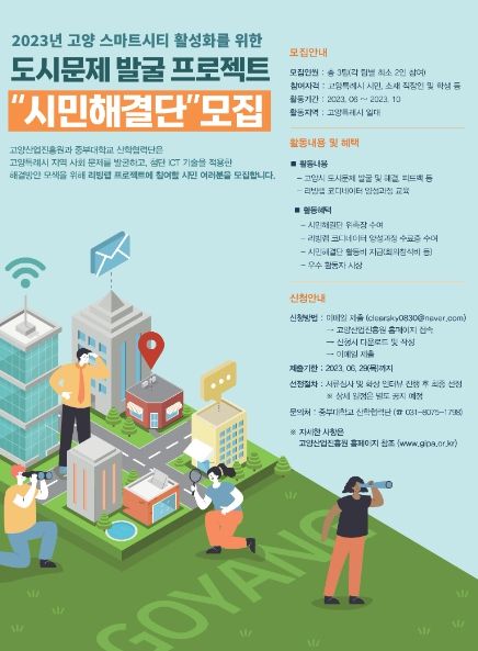 미디어라이프 중부신문 정호복 기자 | 고양특례시와 고양산업진흥원은 6월 29일(목)까지‘2023년 고양 스마트시티 문제 발굴 리빙랩 사업’에 참여할 시민해결단을 공개 모집한다.