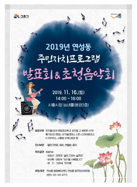 행사 관계자는 “연성동 주민들이 선보이는 끼와 재능의 무대뿐 아니라, 초청공연을 통해 모두가 함께 즐길 수 있는 뜻깊은 자리에 주민 여러분의 많은 관심과 참여 바란다”고 전했다.