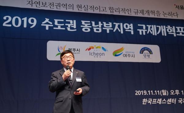 이날 포럼은 수도권정비계획법상의 자연보전권역 및 환경정책기본법상의 자연보전권역 지정과 환경정책기본법상 팔당호수질보전특별대책 권역에 따른 각종 중첩규제의 문제점에 대한 현실적이고 합리적인 개혁 방안을 모색하고자 마련됐다.