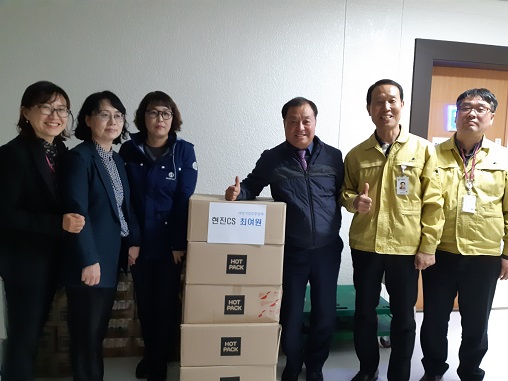 이날 방문은 아프리카돼지열병 방역 비상근무가 장기화됨에 따라 추위에 고생하는 근무자를 위한 핫팩 2,000개를 전달했다.