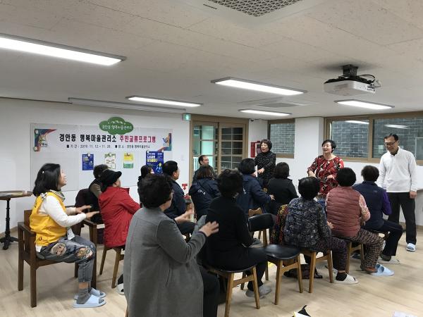 이번 주민교류프로그램은 ‘경안동 행복마을관리소’에 대한 지역주민의 관심도를 높이고 주민과 함께하는 행복마을관리소 사업의 조기 정착을 위한 것으로 지역 주민들에게 11월 한 달 동안 실버웃음교실, 천연비누만들기, 종이접기 작품만들기, 손바느질 강의, 캘리그라피 등 다양한 프로그램을 제공할 계획이라고 전했다.
