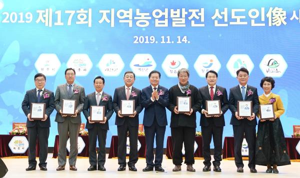 올해로 17회째를 맞은 ‘2019 지역농업발전 선도인상’은 농협중앙회가 농업·농촌 지원 정책 및 농협과의 협력 사업을 추진해 농가 소득증대 및 농업·농촌 발전에 크게 기여한 유공자에게 수여하는 감사패이다.