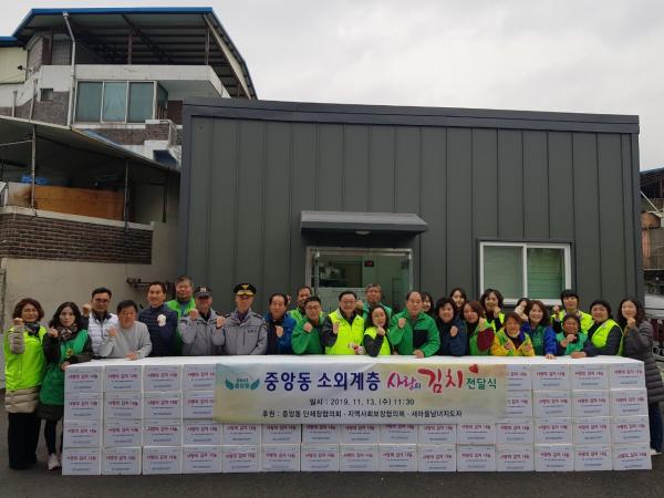 장병태 중앙동장은 “바쁜 일정에도 불구하고 중앙동의 어려운 이웃을 위해 이번 사랑의 김치 나눔 행사에 동참해주신 각 단체 위원님들께 감사드리며 소외된 이웃들이 이웃 간의 정을 느끼는 따뜻한 겨울을 보내시길 바란다”고 전했다.