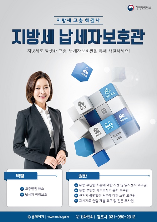 김포시는 2018년 3월부터 ‘납세자보호관’을 배치해 지방세 관련 고충민원의 처리 및 세무 상담 세무조사·체납처분 등 권리보호 요청에 관한 사항 납세자권리헌장 준수 등에 관한 사항 세무조사기간 연장 및 연기 등에 관한 상담창구를 운영하고 있다.