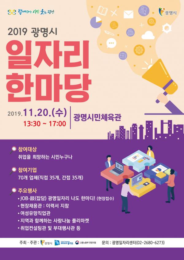 기업체의 구인난 해소와 관내 구직자의 취업 기회를 확대하기 위해 진행되는 이번 일자리한마당은 광명시와 경기도, 고용노동부안양지청이 공동으로 주최한다. 행사에는 광명역세권에 신규로 입주하는 업체를 비롯해 관내 중소기업체와 인근 금천·구로구 등에 있는 중소기업 70개 업체가 참여하며 291명을 채용 예정이다. 이중 35개 업체는 박람회 당일 현장에서 면접을 통해 217명을 채용 계획이며 나머지 35개 업체는 이력서 대행 접수를 통해 74명을 간접 채용한다.