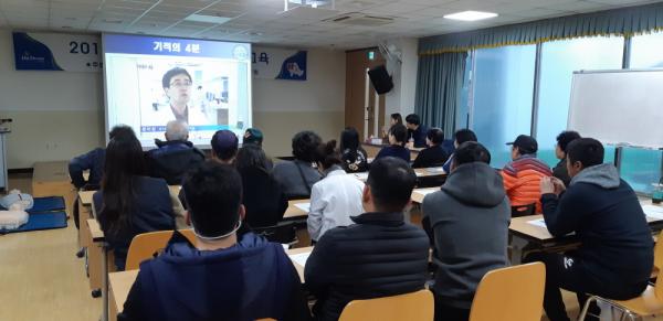 가정이나 주변에서 심정지환자가 발생했을 시 당황하지 않고 현장에서 119 구조대에 신고함과 동시에 먼저 심폐소생술을 실시하는 방법과 구조 및 응급처치를 하는 교육으로 진행됐다.