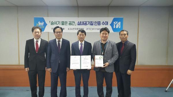 ‘숨쉬기 좋은 공간 실내공기질 인증’이란 한국표준협회와 연세대학교가 공동개발한 “i숨지수 모델”을 활용해 기업 및 단체의 시설에 대해 실내공기질과 관리수준을 객관적으로 평가하고 우수성을 인증하는 제도이다.