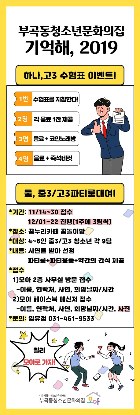 이번 행사는 청소년들에게 잊지 못할 추억을 만들어 주고 2019년을 기억하는 의미에서‘기억해 2019’라는 주제로 총 3가지의 행사를 선보인다.