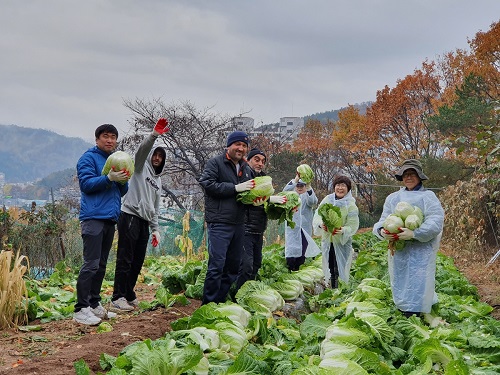 도시농업연구회는 텃밭교실에서 3달여 동안 정성들여 기른 배추 150여포기를 수확해 김장철을 맞은 역동마을주민협의체에 기부했다.