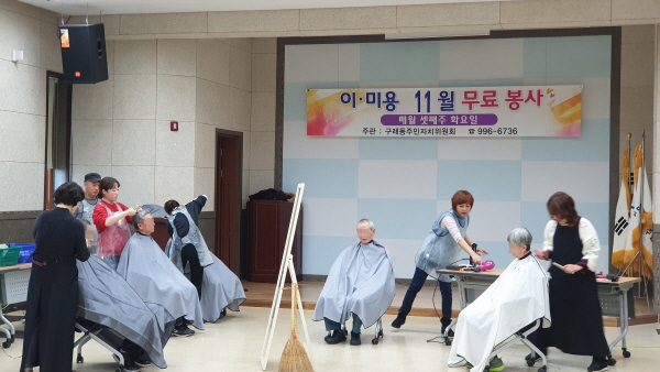 구래동 주민자치위원회의 ‘사랑의 이·미용 봉사’는 2015년부터 시작해 현재까지 매월 셋째 주 화요일 어르신과 기초생활수급자 등을 대상으로 꾸준하게 실시해 오고 있다.
