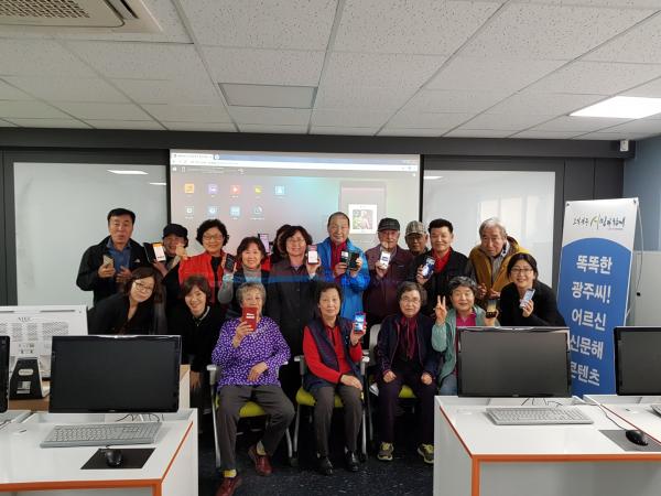 ‘똑똑한 광주씨-어르신 신문해 콘텐츠’ 프로그램은 1, 2차로 나눠 운영됐으며 9월 24일부터 10월 29일까지 운영된 1차 교육에는 35명을 대상으로 웃음치료&레크레이션, 올바른 약물복용법 등 특강 4회와 스마트폰 교육 6회가 진행됐다. 또한, 11월 1일부터 22일까지 운영된 2차 교육은 22명을 대상으로 금융사기예방 등 특강 3회와 스마트폰 교육 7회가 진행됐다.