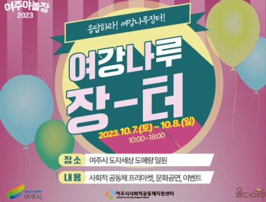 미디어라이프 중부신문 이종인 기자 | 여주시에서는 10월 7일부터 8일까지 2일간 여주도자세상 일원에서 “2023 여주야놀장~ 여강나루장터”를 개최한다.