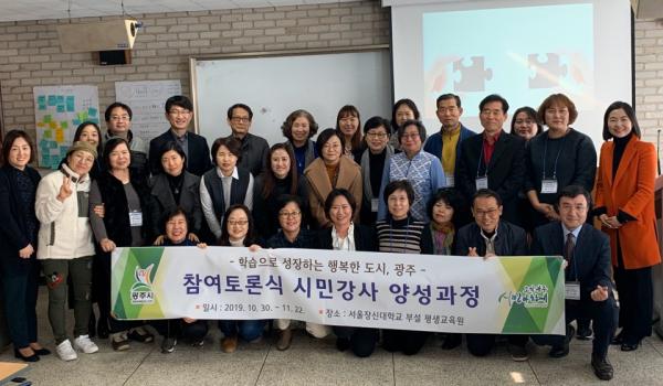 ‘참여 토론식 시민강사 양성과정’은 교육부에서 평생학습도시로 선정돼 추진한 신규 사업으로 삶에 적용이 필요한 평생교육 현장에서 시민과 함께 다양한 참여 토론 및 토론식 학습동아리를 운영할 수 있는 전문적 역량을 향상시키기 위한 교육이다.