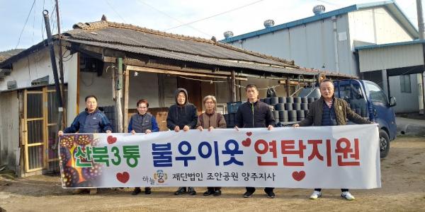 앞서 지난 25일에는 산북동 소재 재단법인 조안공원 직원들과 봉사자 등 10여명이 연탄으로 추운 겨울을 보내야 하는 지역 저소득 4가구에 1500장의 연탄을 전달하며 따뜻한 온기를 전했다.