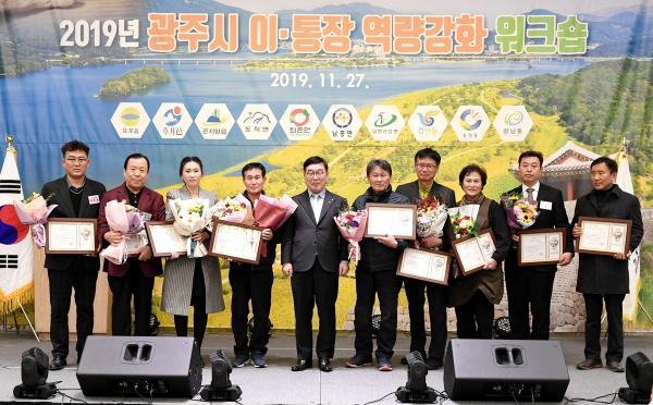 이날 워크숍에는 신동헌 시장, 소병훈·임종성 국회의원, 박현철 시의회 의장, 이호순 광주시 이·통장 협의회장 및 이·통장 등 350여명이 참석했으며 워크숍은 행정의 최일선에서 지역 발전과 복리를 위해 맡은 바 소임을 다하고 지역 주민과의 가교역할을 수행하는 이·통장의 노고를 위로하고 역량을 강화하기 위해 마련됐다.