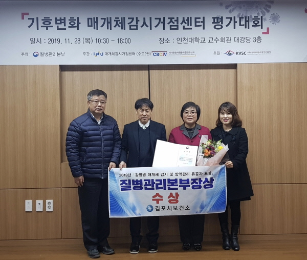 또한, 김포시보건소는 지난 22일 ‘2019년 감염병관리 컨퍼런스’에서 매개감염병 방제사업 분야에서 “빅데이터 활용 말라리아 우선 방역지역 선정”이라는 과제로 학술포스터 부문 장려상을 수상한 바 있다.