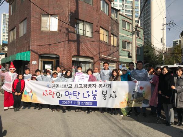 복지지원과 김학숙 과장은 “추운 날씨에도 이렇게 봉사에 참여해주신 경민대학교 최고 경영자 봉사회 회원들께 진심으로 감사를 드린다”며 “어려운 이웃을 생각하는 마음들이 모여 어르신들이 따뜻한 겨울을 보낼 수 있을 거 같다”고 말했다.