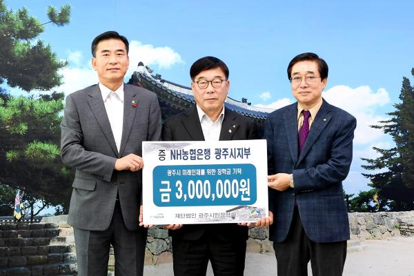 이날 전달된 기탁금은 광주시의 인재양성을 위해 장학사업을 펼치고 있는 광주시민장학회의 장학금으로 사용될 예정이다.