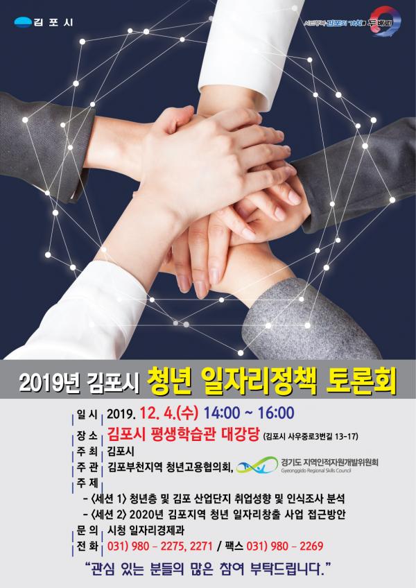 이번 토론회는 김포부천지역 청년고용협의회와 경기도 지역인적자원개발위원회의 공동 주관으로 청년층과 김포산업단지 실태조사 결과분석을 통해 일자리 미스매치 해소방안을 마련하고자 개최된다.