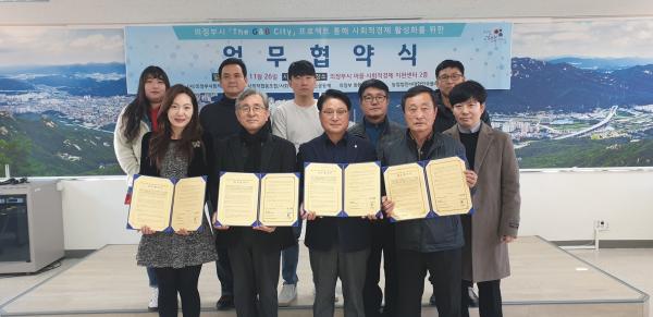 이번 업무협약식은 의정부의 가치를 높이고 시민이 행복한 도시를 만들기 위한 민선7기 역점 추진사업인 The G&B City 프로젝트 사업에 필요한 업무협력 체계를 구축하기 위한 것으로 의정부사회적경제협회협회, 사회적협동조합 사회적경제를 이끄는 공동체, 의정부 화훼농업인협회, 농업법인대한민국플라워마켓 대표가 모인 가운데 The G&B City 프로젝트의 성공과 의정부 사회적경제 활성화를 위한 협약식을 진행했다.