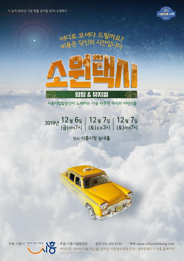 2018년 초연당시 시흥시민들의 많은 사랑을 받았던 창작합창뮤지컬 [소원택시]는 올해 새롭게 단장했다. 누구나 한번쯤 들어보았을 귀에 익은 가요와 눈에 익은 장소들을 바탕으로 ‘가족’에 대한 따뜻한 이야기를 그리고 있다.