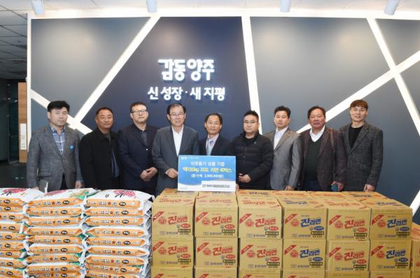 [미디어라이프(medialife)] 양주시는 지난 11월 28일 경기북부재활용협동조합에서 관내 어려운 이웃을 돕는 데 써달라며 백미 10kg 33포, 라면 40박스를 전달했다고 밝혔다.