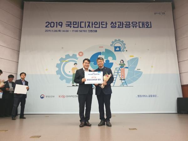 시는 지난달 28일 서울 SETEC 컨벤션홀에서 열린 ‘2019년 국민디자인단 성과공유대회’에서 2년 연속 우수기관으로 선정, 행정안전부장관상을 수상하는 영예를 안았다.