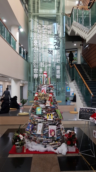 죽전도서관, 1천여권 쌓아 만든 크리스마스 책트리 설치