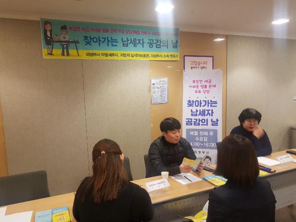 송호윤 의정부시 마을세무사, 지방세 납세자보호관, 시 소속 변호사와 함께 참여하는 찾아가는 납세자 공감의 날은 시민들이 세금과 법률에 대한 궁금증을 해결하기 위해 세무사 또는 변호사 등 전문가를 찾아야 하는 불편함을 해소하고자 마련한 프로그램으로 전문가가 시민을 직접 찾아가 진행한다.